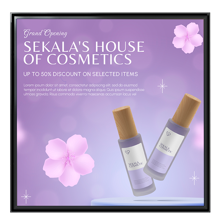 Immerse your customers in a visual feast with Square Display. Whether it's vibrant images or captivating videos, this display format ensures that your products are presented with the attention they deserve. Create an atmosphere that goes beyond the ordinary, where every promotion becomes a memorable and impactful experience.